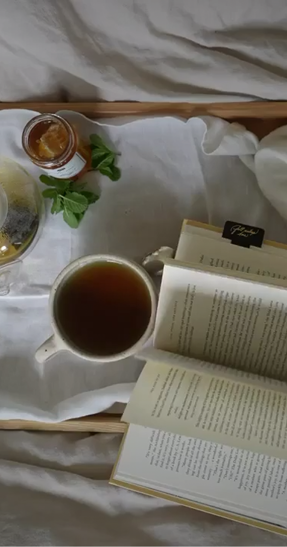 Leather Bookmark, Sage Honey with Honeycomb, and Peppermint Tea