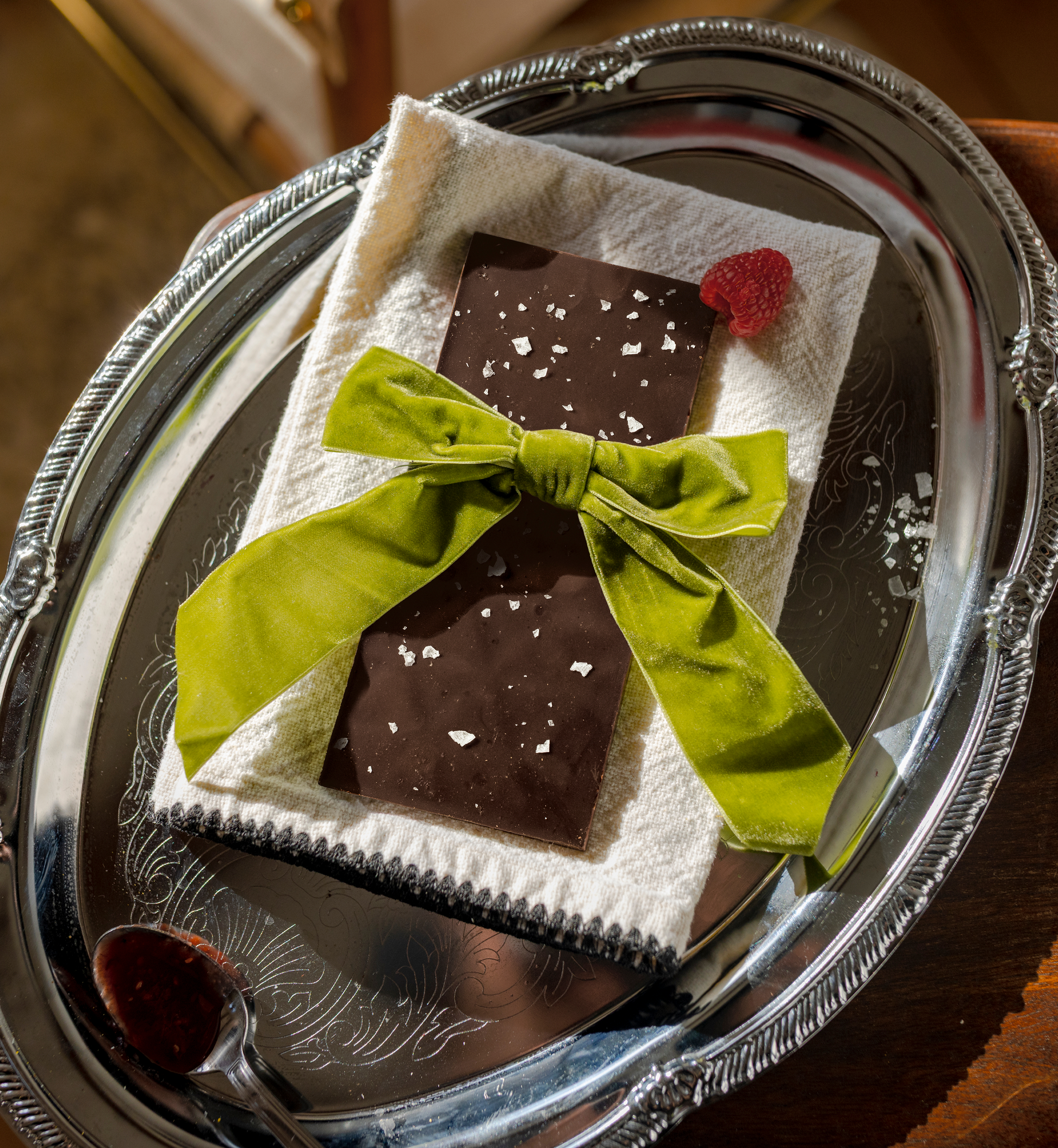 Enjoy a few pieces of chocolate after dinner, with a spoonful of Raspberry Spread nearby for dipping, drizzling, or savoring straight from the jar.