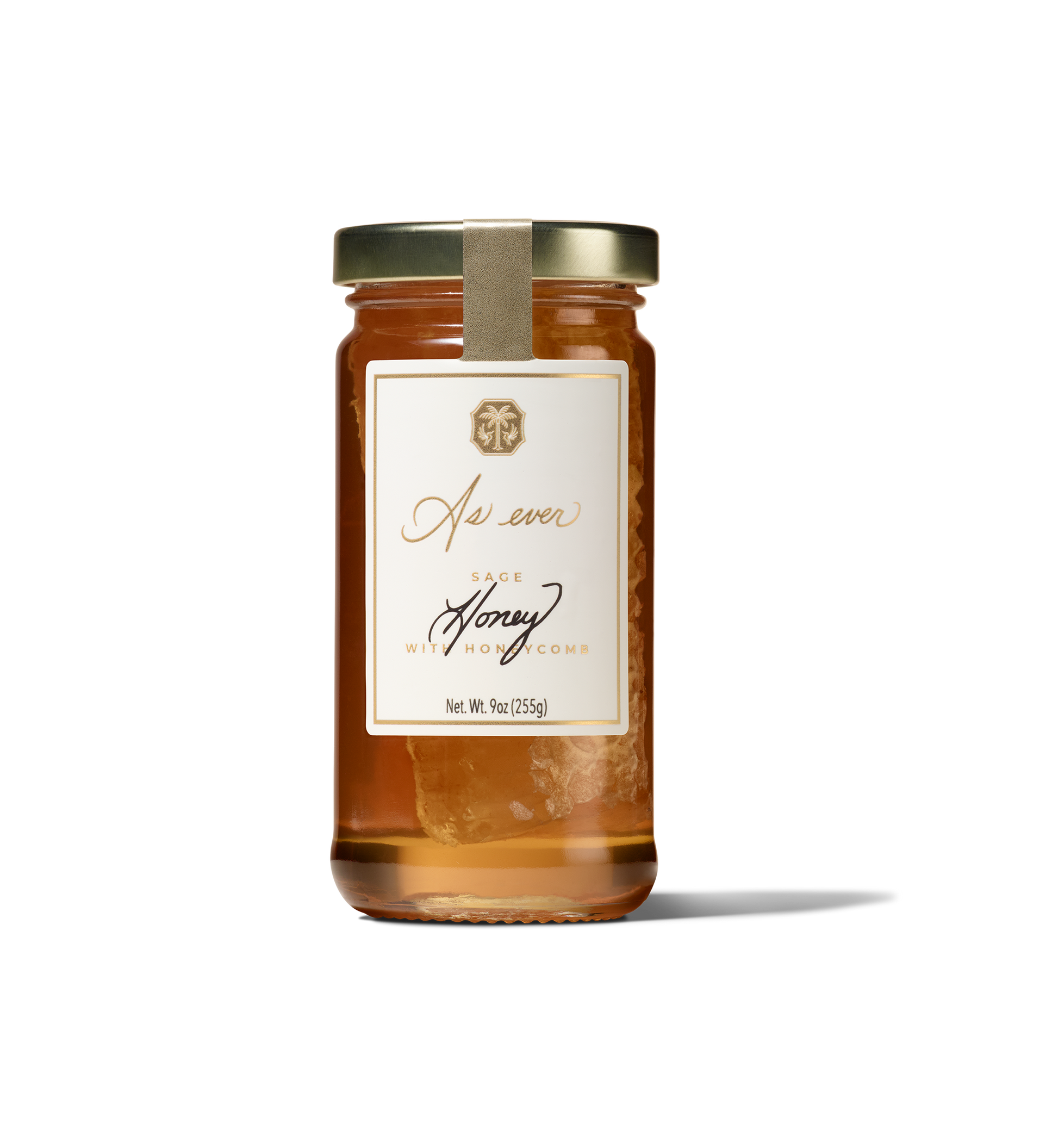Crafted with love and made to be shared, this 100% California-harvested honey kissed with sage is a sweet reminder to pause and savor the moment. Minimally processed to retain its delicate sage blossom notes and natural sweetness, this is our most epicurean honey—its earthy, grounding flavor lends itself beautifully to savory dishes, while its gentle sweetness adds an elegant and elevated touch to desserts and light bites. Reminiscent of warm days spent tending to the abundant varieties of sage growing in her own garden, this honey holds a special place in Meghan’s heart. With a silky texture and glimmering golden hue, it's a true gift from nature. The edible raw honeycomb nestled inside is harvested at its peak for texture and flavor, adding an extra giftable quality to this very special jar.