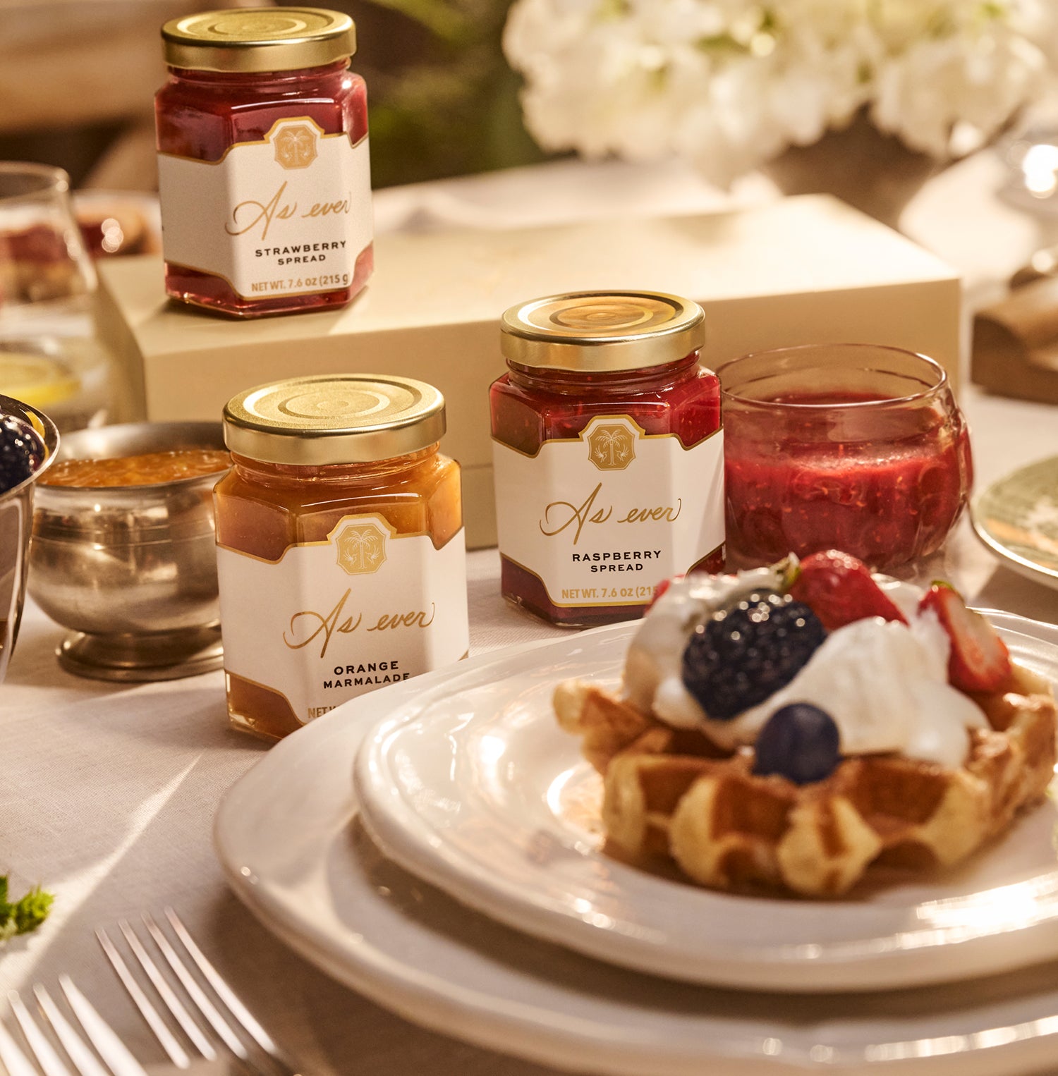 This beautiful, giftable box contains a collection of three beloved spreads: delicately sweet and versatile Orange Marmalade, our bestselling Raspberry Spread, and our brand-new Strawberry. This much anticipated flavor is exclusive to our holiday sets—and one of Meghan’s favorite spreads to make at home. Each spread is inspired by the jams Meghan has created in her own kitchen and shared over the years. Bright, just a bit tart, with a whisper of lemon to bring out the fullness of the flavor, all three spreads are crafted to highlight each fruit’s natural essence.