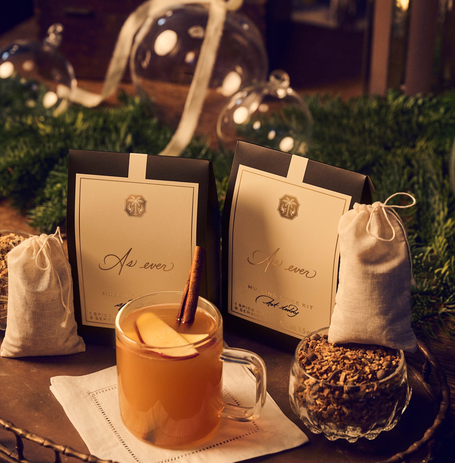 A warm, vibrant blend of cinnamon, citrus peel, ginger root, clove, allspice, and nutmeg, to be shared in good company. A holiday entertaining essential for cozy moments and celebratory occasions alike, the As ever Spiced Cider Mulling Spice Kit has a sweet, warm scent that welcomes guests into the heart of the home—the kitchen, of course—and invites them to stay awhile. While our founder’s favorite way to enjoy this seasonal delight is to pour the entire packet into a large pot of apple cider and leave it bubbling away on the stove to share with friends and family, it’s also a perfect blend to elevate a simple mug of apple cider into a single serving of something special.